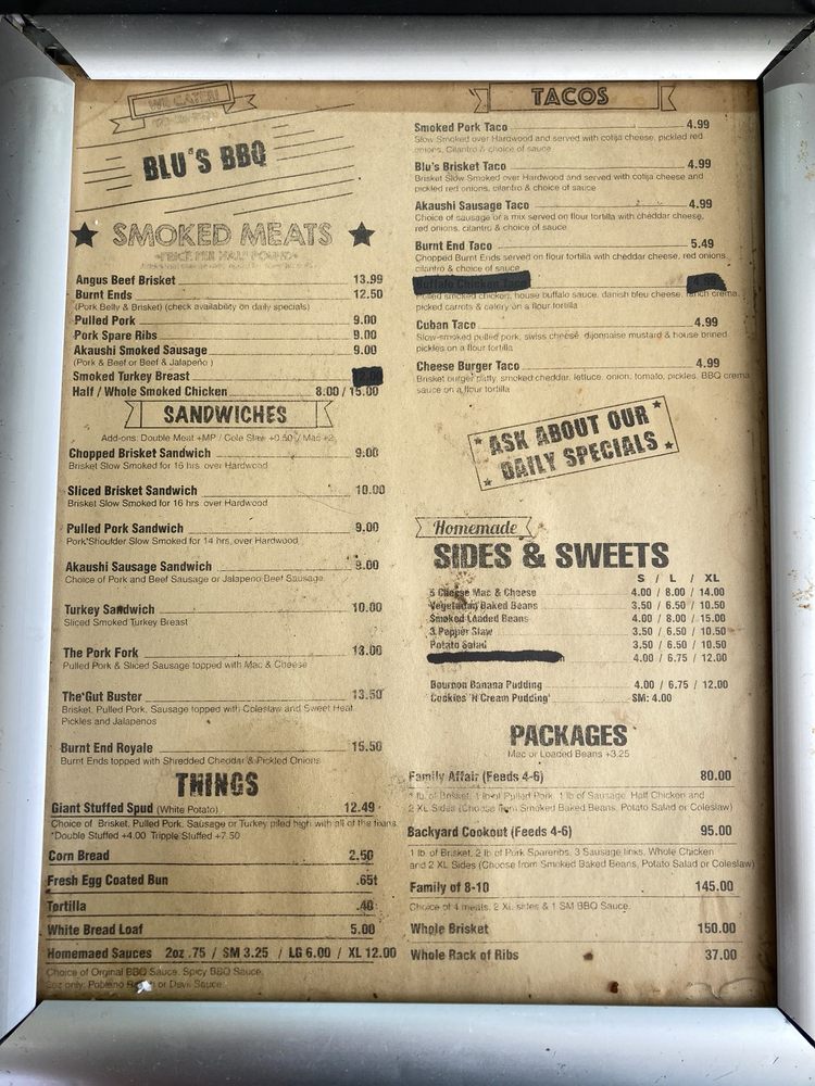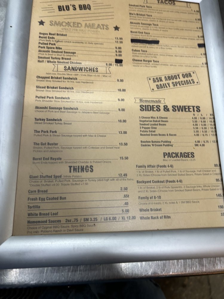 Blu's Barbeque & BBQ Catering Menu (Update 2025)